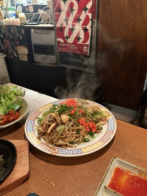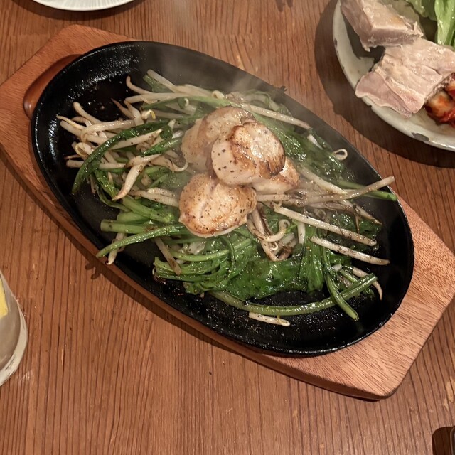 鉄板ホルモン焼き、イカ焼き、チヂミ、お好み焼き、とんぺい焼きとか色々食...