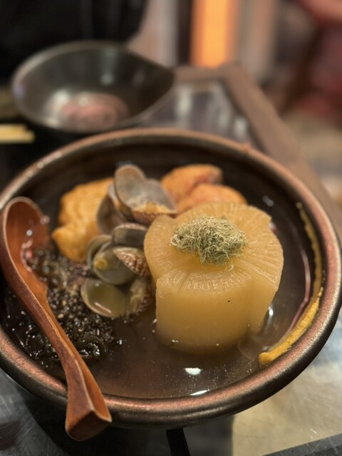 こだわりの『浅利出汁』は全てのお料理に使⽤しており、名物のおでんをはじめ様々なお料理でご堪能いただけます。四ツ橋駅・⼼斎橋駅から駅チカなのでお仕事帰りにフラッとお⽴ち寄りください。翌4時まで営業しておりますので、⼆次会・三次会利⽤にもピッタリです︕【各種宴会も承ります】飲み放題付きコース3,850円〜◎ご宴会40名様迄OK︕ロフト個室は6〜8名で利⽤可能です。お気軽にご予約・ご相談ください。