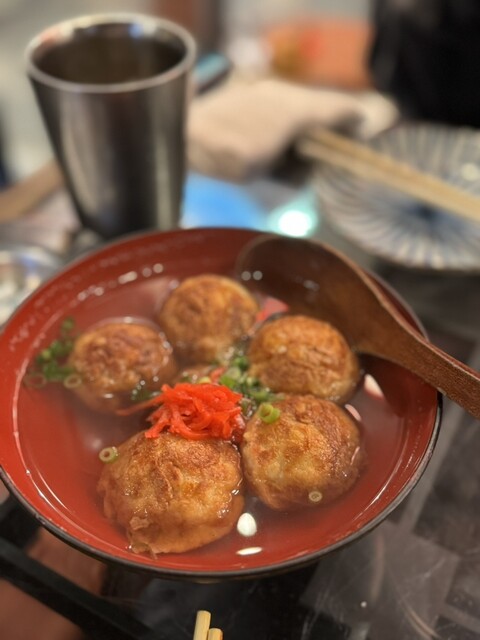 12月上旬に食べログから予約して2名で伺いました。 平日でしたが、19時の時点で私が予約していた席以外すでにお客さんでにぎわっていました。 かなり前に1度来たことあるのですが、 今回もまた頼んだのがやっぱり出汁蛸(8こいり) おでんのだしを使われていて、たこ焼きもおでんのだしも好きな人にはたまらない味。 明石焼きみたいな感じですが、明石焼きよりもおいしいかも。 あとは インカ... 詳細を見る
