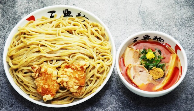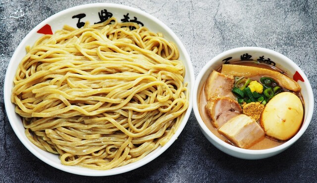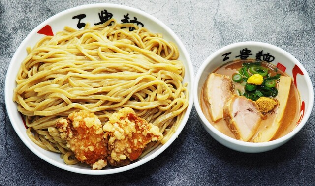 つけ汁は、濃厚な豚骨魚介系。