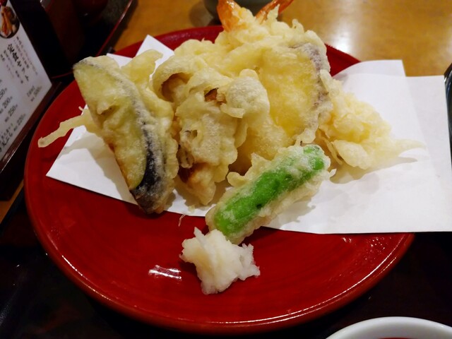 この日はこの後にまだ用があったのでアルコールは飲みませんでした。天麩羅は海老が2匹、ししとう、茄子、カボチャ、さつま芋でした。蕎麦はごく普通の蕎麦ですが、そばつゆが美味しいで...