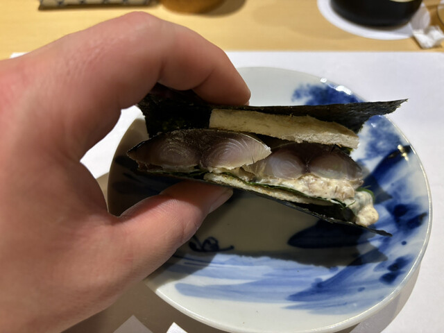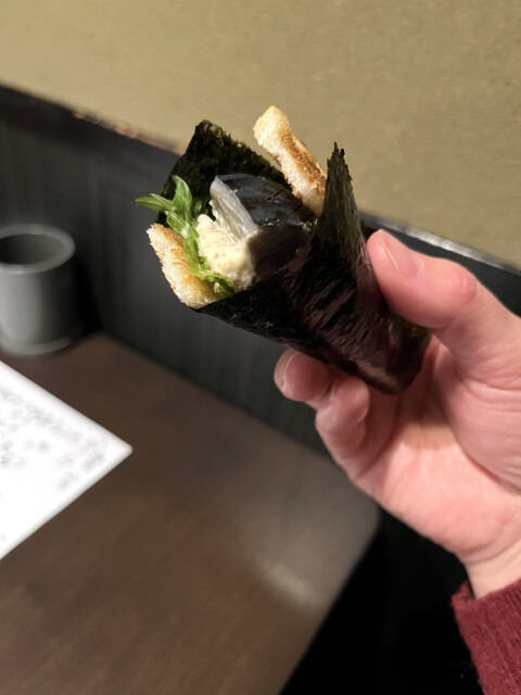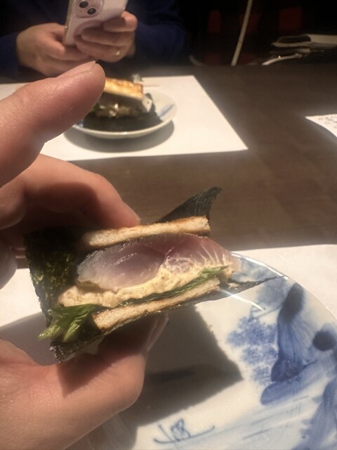 こんにゃくのおでんとシメサバのサンドが