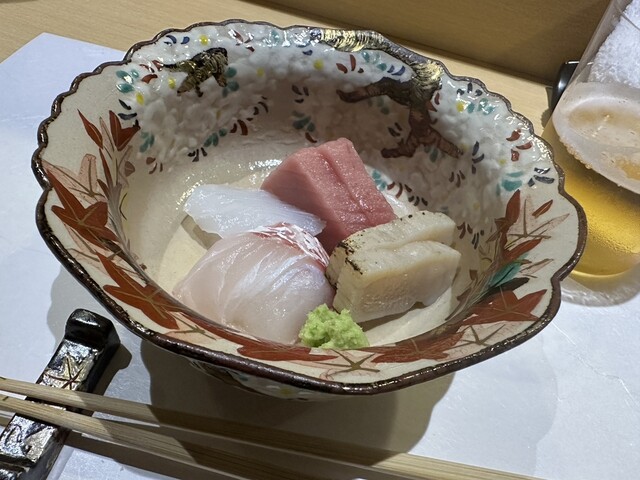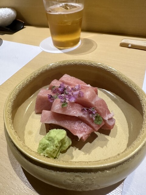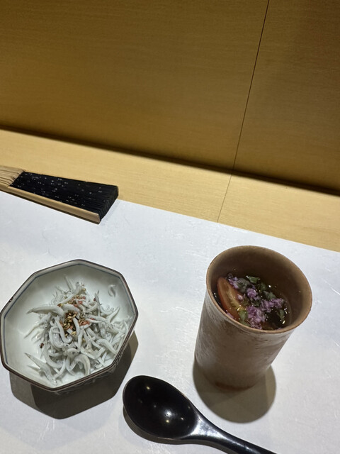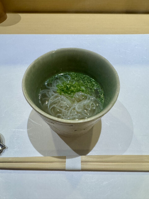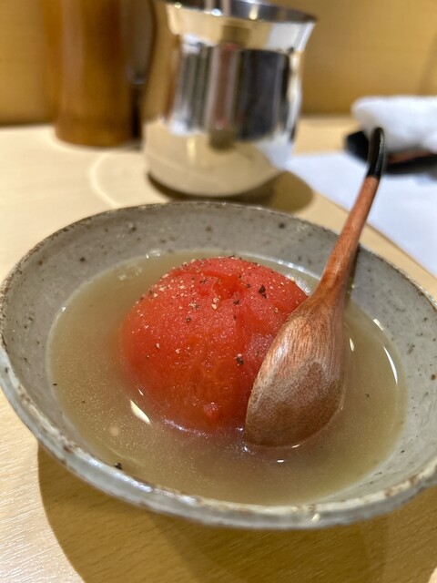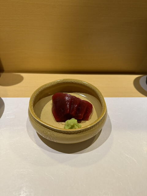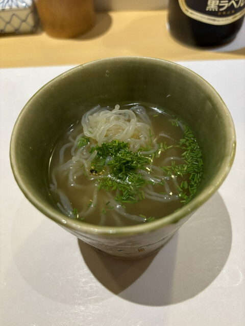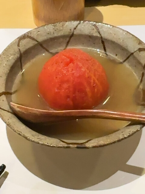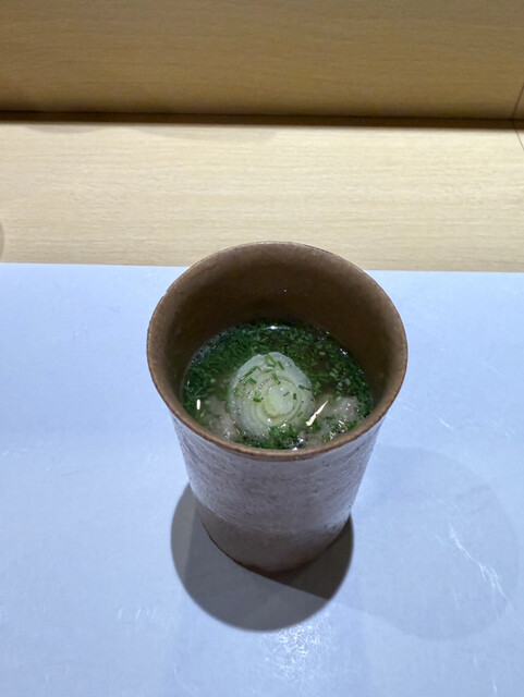 最初にマグロが入った出汁スープ。