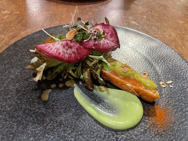 前から気になっていたところをたまたま通りかかって入店。コースのみの提供とは知らずに入ってしまいましたが席が空いていたのでお願いすることに。まず、前菜から野菜の鮮度と美味しさに 驚きっぱなしです。 パンも小ぶりですが、一つ一つがとっても美味しい。どの素材も丁寧に処理されており、口に入れやすいサイズ... 詳細を見る