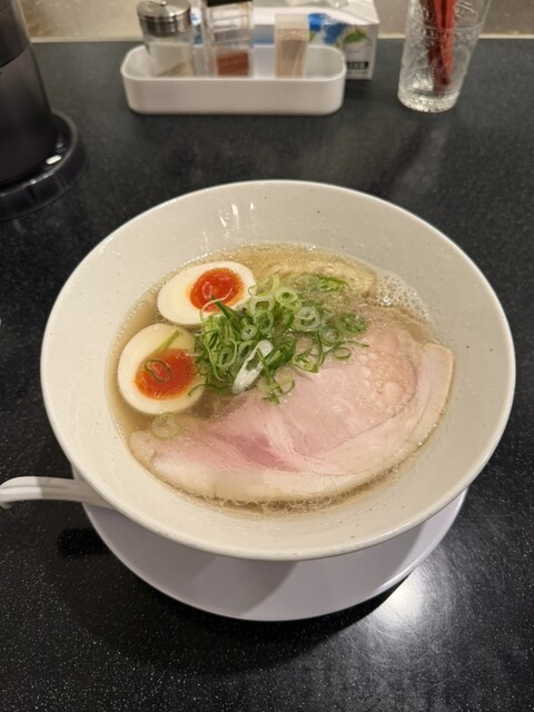 お昼に塩ラーメンが食べたくて来店しました。まだ席が空いていたのでスムーズにご案内して頂けました。貝塩ラーメンにチャーシューと味玉トッピングで注文しました。スープはさっぱりとしていて、チャーシューも柔ら...
