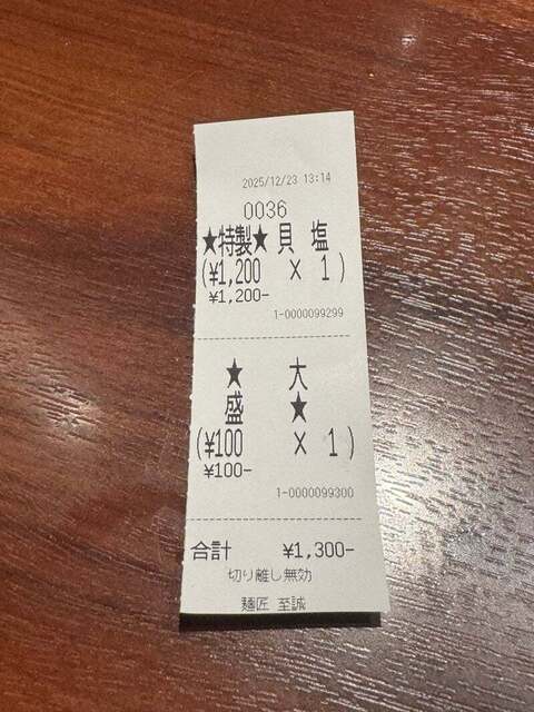 頼んだのはど定番特製貝塩ラーメン大盛。1300円