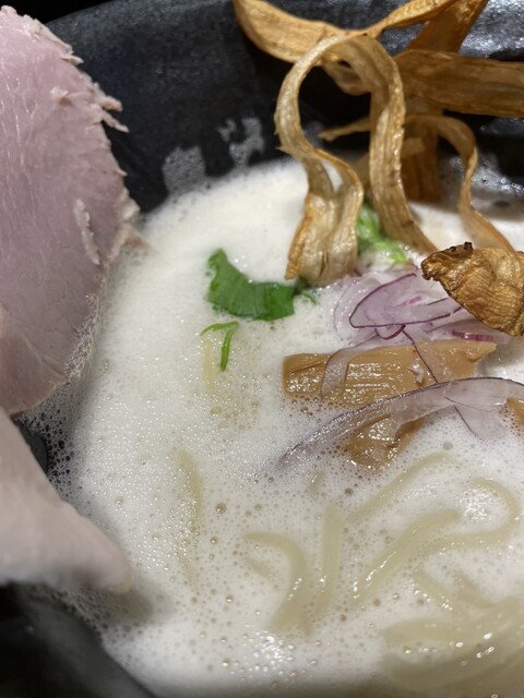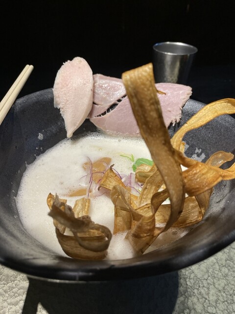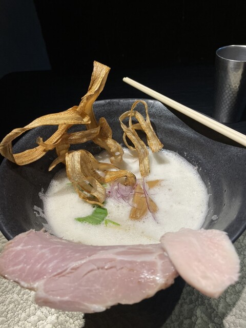当店は「ラーメン屋にできること」をテーマに掲げ、日々ラーメンと真剣に向き合っています。スープはこだわりの鶏を使用し、旨味・深み・香りを演出。まるでポタージュのようなクリーミーな味わい。チャーシューは、鶏・豚肩ロースの2種類。鶏は、朝引き地鶏を使用し低温調理法で、パサツキのないしっとりした仕上がり。豚肩ロースは大ぶりのレアチャーシュー。ごぼうの素揚げ・肉厚のメンマは、一杯のラーメンの中で楽しんで頂け...る様工夫を凝らしました。さらにお好みで生姜をどうぞ。店内は、落ち着きのある和をイメージし、カウンター席のみとなっております。今までにないラーメン屋として満足して頂けるよう、スタッフ一同心よりお待ちしております。