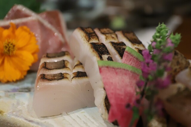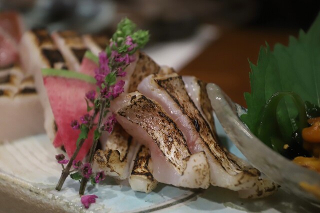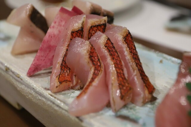 まずは、お造り盛り合わせ。 どのネタも鮮度が抜群で、厚みも申し分なし。