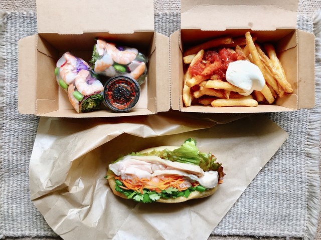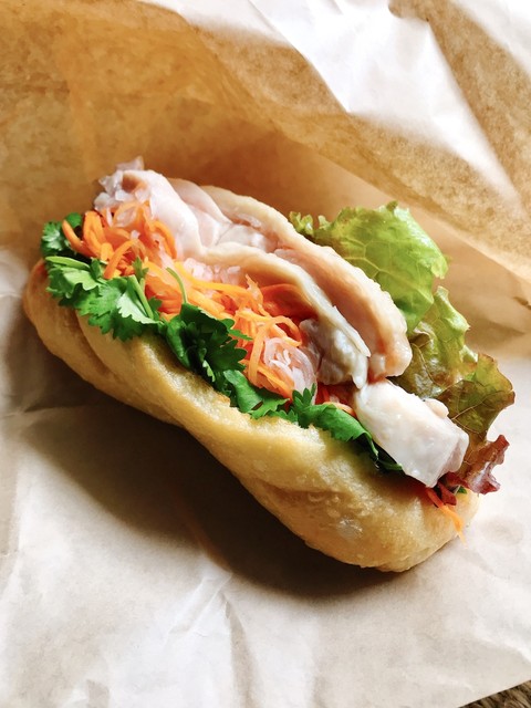 1階は、ベトナムの現地で親しまれているサンドイッチ「バインミー」のスタンド「BANH MI STAND」。「バインミー」とは、柔らかいバゲットにパクチーやナマス、ベトナムの魚醤「ヌクマム」などと一緒に蒸し鶏やパテなど具材を挟み込んで食べる屋台フード。1階奥には、次世代型「スナックKYU」も併設。