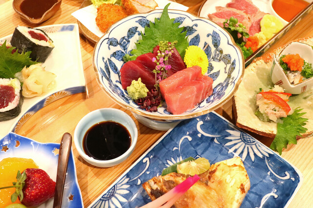 職人はマグロ一筋50年!その日一番のマグロを仕入れ、最適な調理法でご提供いたします。素材が際立つ造りは天然ものでご用意◎まずはマグロ本来の美味しさを味わってください。隠れ家のような趣ある和空間もこだわりのひとつ!カウンターでライブ感を味わうのもよし、お座敷でプライベートな時間を過ごすのもよし◎ごゆっくりと絶品マグロ料理をお楽しみください。