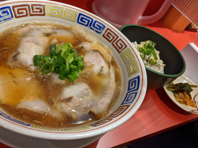 注文したメニュー 今回は期間限定メニューの「つけそば(熱盛)」を注文。 「麺もつけ汁もアツアツ!」という謳い文句に惹かれました。 つけ汁 濃厚な醤油ベースのスープで、豚肉の旨味がしっかりと感じられます。 表面には香ばしい油膜が張っており、熱々の状態で提供されました。 具材は厚切りのチ... 詳細を見る