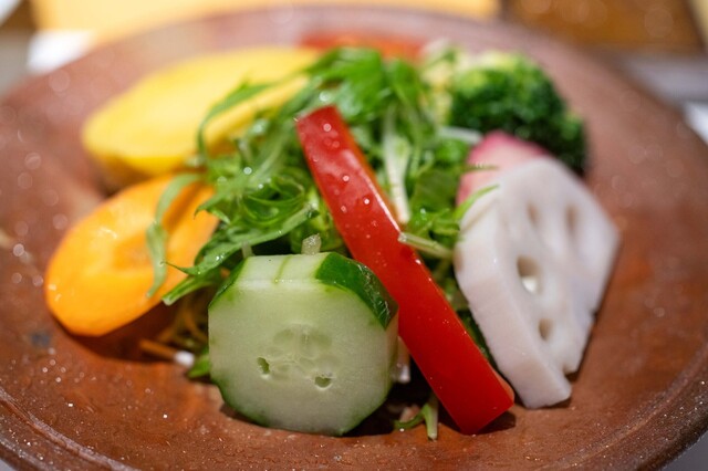 創作和食や厳選した生野菜、串焼きなど、「鳥清」のこだわりがつまった【特選コース】です。味はもちろん、盛り付けやお皿など細部まで工夫を凝らした逸品をご提供。 天満市場で仕入れた新鮮な生野菜は、季節ごとに旬のものを使用。 何度来ていただいても新しい味をお楽しみいただけます。 「鳥清」の真髄をご堪能いただくならこちらのコースがおすすめです。