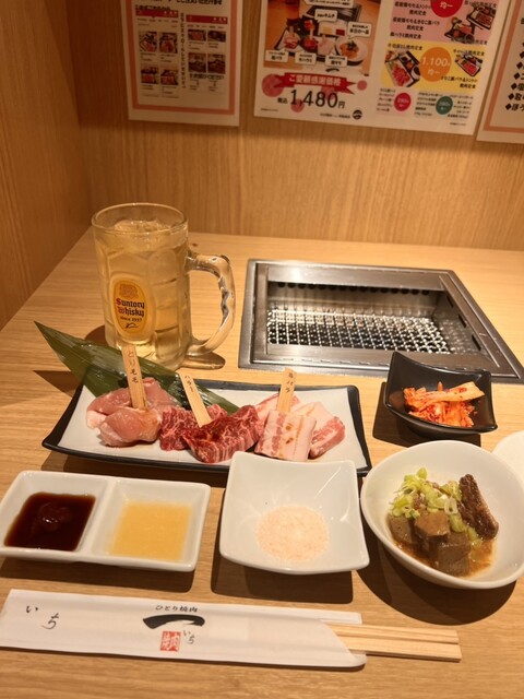 土曜日の13時過ぎ2人で焼肉 空いてました ◆ちょい飲みセット(1450円) ・豚バラ・牛ハラミ・鶏もも・キムチ ・生ビール ◆もやしナムル ◆焼にんにく ◆... 詳細を見る