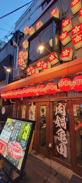 焼肉亀田の姉妹店である当店は2023年3月に心斎橋にオープンしました。名物肉鍋は白味噌ベース豚骨スープの白、赤味噌ベース麻辣スープの赤の2種類ご用意。朝引き後すぐに直送された新鮮なホルモンも是非お召し上がり下さい。鍋を食べなくても、さくっと一品だけでも楽しめるので二軒目利用も出来ます。一階カウンターは一人鍋専用なので、おひとりさまでもお気軽にお楽しみいただけます。二階は大人数でのご利用が可能です。