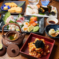 初めてご来店のお客様はもちろん、どれも美味しそう、豊富なメニューから選ぶのが迷ってしまう方にはこちらの5,000円コースがおすすめです! その日の前菜からおまかせのお造り、握り、本日の一品と〆の汁物まで贅沢盛りだくさんのコースとなっております。自信のある新鮮な食材を使って提供しておりますので是非ご利用下さいませ。 ・2時間飲み放題付き(※L.O90分) ・前日までの要予約