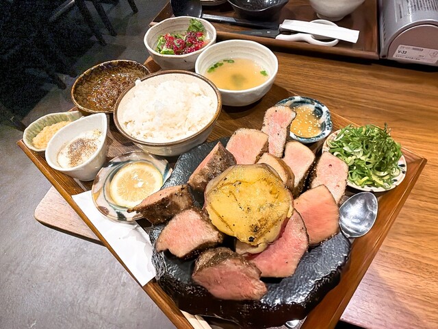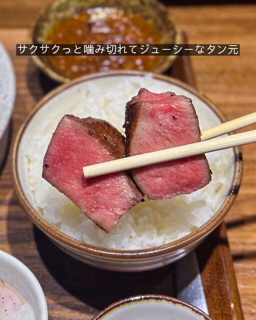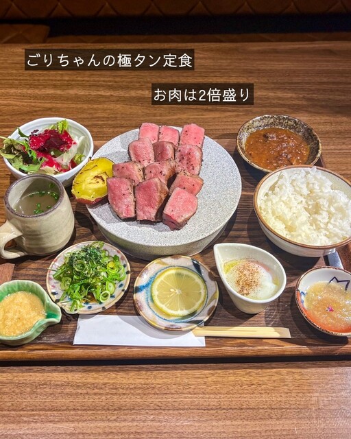 「ごりちゃんの極タン定食」 お肉はお得に1.5倍、2倍と増量もできるので2倍盛りで! 厚切りながらもサクサクッと噛み切れるタンは 希少な『タン元』を使用しているようです ... 詳細を見る