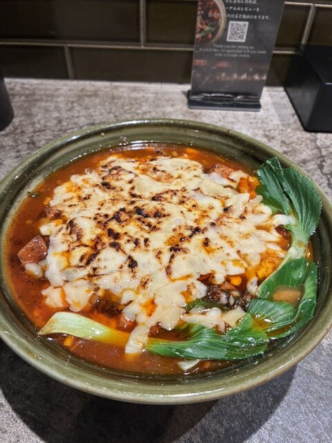 SNSで見たチーズ麻婆豆腐麺汁ありを注文しました。期待通りピリ辛で美味しく頂きました。
