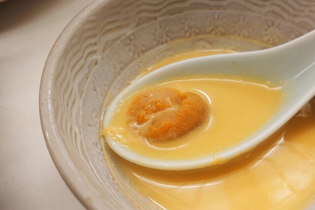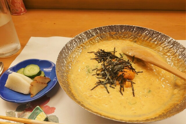 ウニの出汁にウニをくぐらせて食べる。もうなんだこりゃですよ。