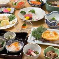 旬の素材(山海の食材)を中心に、大分県名物・とり天、当店秘伝の味噌ダシを使った お鉢で召し上がっていただく大分県郷土料理「だんご汁」をしめに召し上がっていただきます。当店人気コースです。