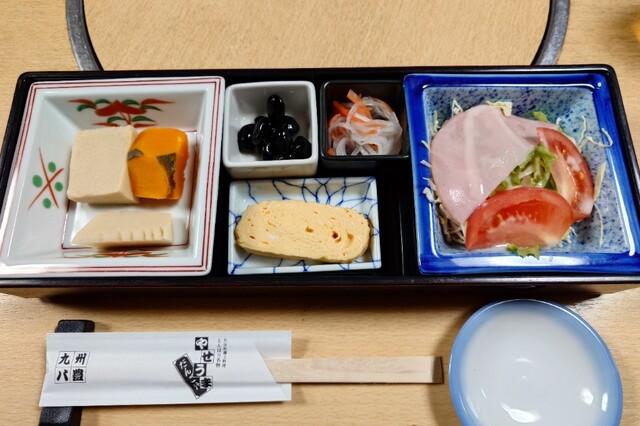 当店名物「やせうまだんご汁」は、手作りの「やせうま」と、大分より直送された味噌を絶妙のバランスで合わせたお鍋。酒かす、練りゴマなどを加えたコクのある出汁で、山と海の幸を煮込んだファンの多い逸品です。季節を感じる惣菜は、15〜20種ほどを毎日手作り。2階の個室は独立した作りですので、大人数でのご宴会におすすめ!自慢の料理を詰め込んだコースは4,200円からと、お得な価格でご用意しています。