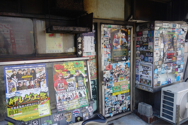 ポスターやステッカーなどがぎっしりと貼られた外観から、初めて来店される方は間違いなく二度見します笑