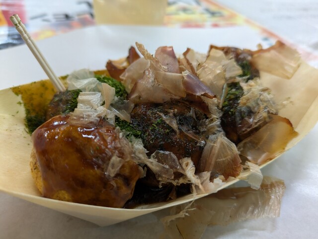 この辺は本当にたこ焼き屋さんも多く、しかもどれも高評価の有名店なのでどこに行こうか迷ってしまいますが、街が混雑しているので移動も一苦労、名前に惹かれてここに決めました。 店頭... 詳細を見る