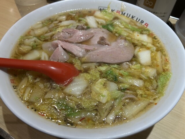 白菜を中心としお野菜がたっぷりと入っていてその甘味がたまりません。あっさり優しく、好みでした。夜遅くまでやっているので、大阪観...