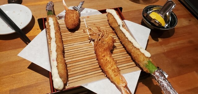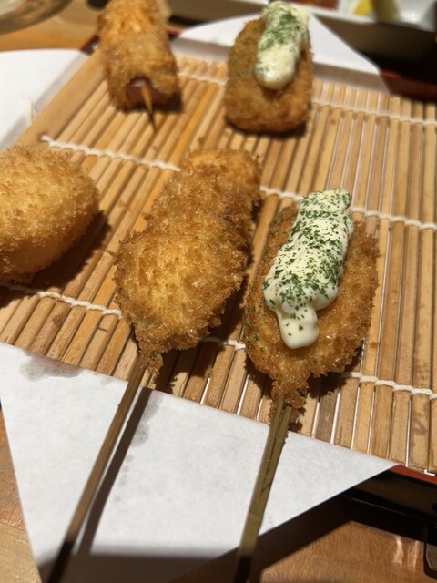 昨日、同僚に連れられて初めて訪問しました。食べた瞬間、限りなく串カツに近い串揚げで、創作?って感じで、あまり美味しくなかったです。好みの問題かも知れませんが、店内はお洒落ですが、価格の割には味がイマイ...