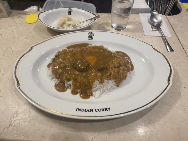 インデアンカレーの特徴的なルーは、最初のひと口でやさしい甘みが広がり、そのあとすぐにスパイスの刺激が追いかけてきます。この独特の甘辛さのバランスは、クセになる味わいで他ではなかなか出会えません。