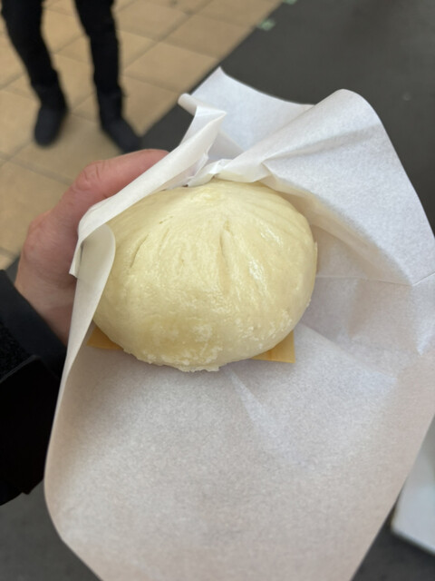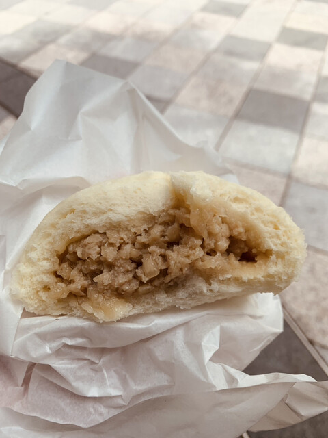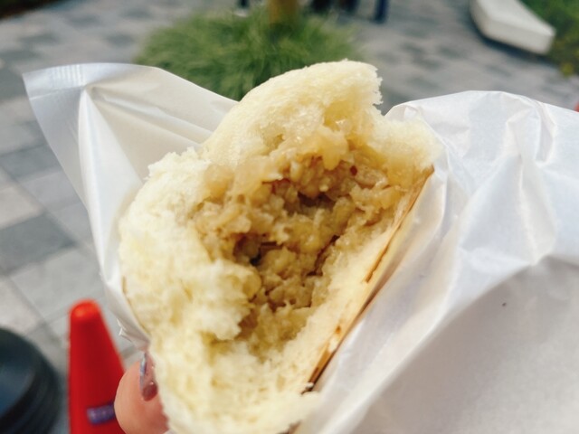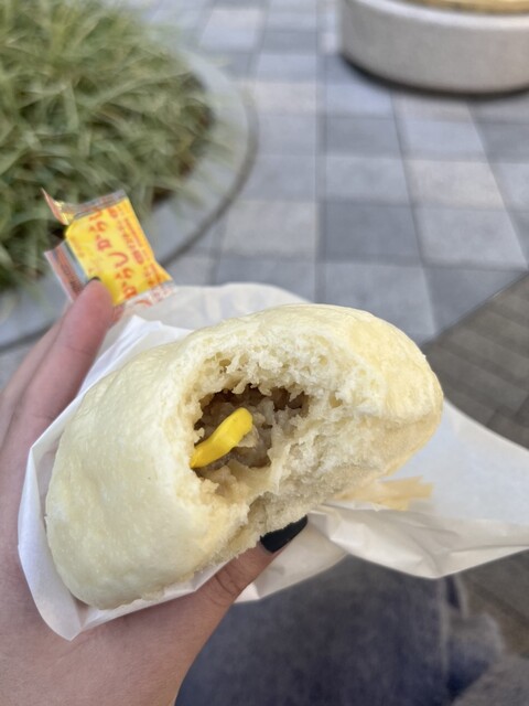コチラで販売しているのは豚まん1本、1個230円というお値段、中はとろとろでシャキッとしたタマネギの食感も良いアクセン...