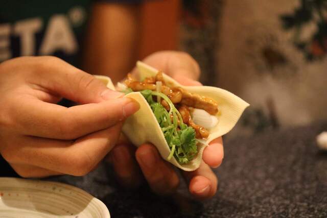 地下鉄日本橋駅を降りて歩くこと5分。道頓堀川沿いにある、本場羊肉の串焼きのお店【故郷】。店主が生まれ育った、中国吉林省延吉市の羊肉料理がベース。金串に指した小ぶりの肉を、テーブルに配置された炭火焼きグリルで焼きながら食べる。金串に刺した羊のもも肉を炭火で焼けば、したたり落ちる油から香ばしい香りが立ち上がり、最高!日本で言う焼き鳥感覚で、中国東北地方では羊肉の串焼きは定番料理。特に、たくさん食べても...太らないし、体にも良いから女性に人気です。ぜひ一度、中国東北地方料理【故郷】にあなたも足を踏み入れてみてはいかがでしょうか ?