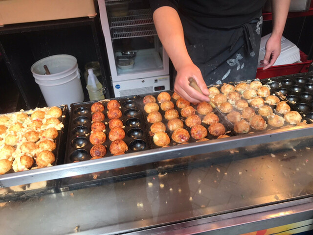 素材にこだわるたこ焼きとお好み焼き、串カツ。メニューも豊富で人気抜群。行列必至の名物店。