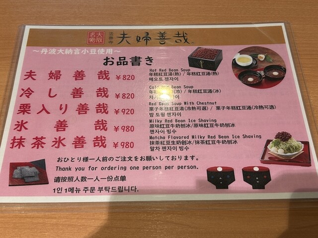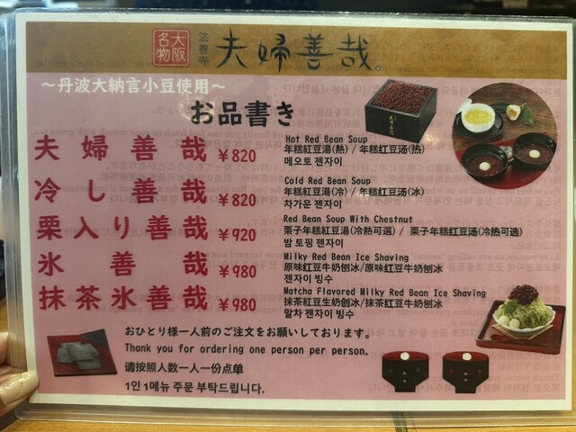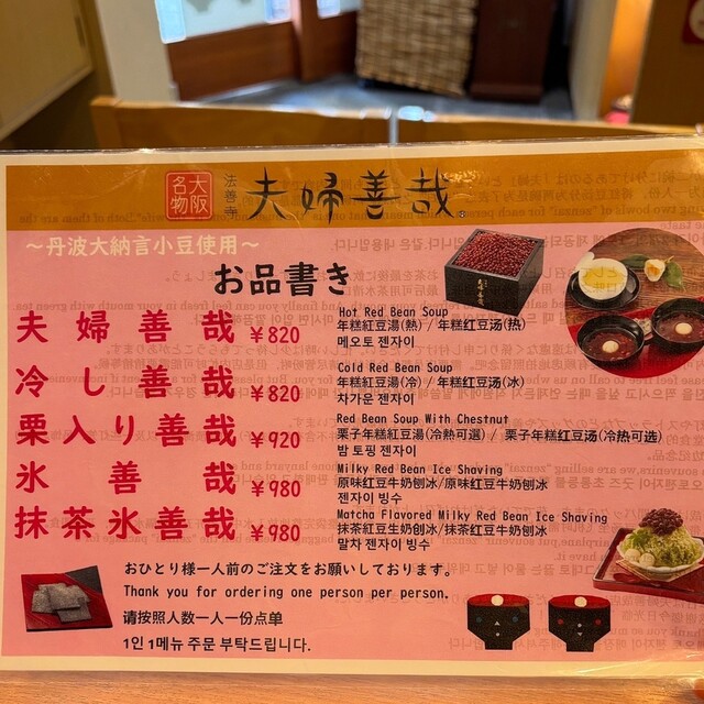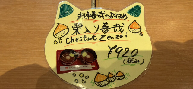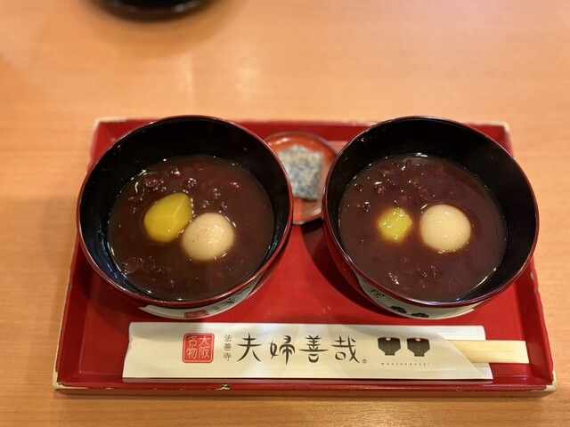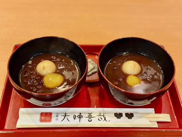 `70代迄の世代に知らない者はいないくらい法善寺の代名詞となっています。店内はさながら“夫婦善哉”の展示室となってます。本日は友人との再会でしたので、ご母堂への手土産を求めに来た序でに、季節の“栗ぜ...