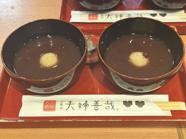法善寺横丁の夫婦ぜんざいへ。小さなお椀が二つ並ぶ可愛い見た目にほっこり。上品な甘さの小豆は粒感もしっかりで、最後まで飽きずに楽しめます。軽やかなのに満足感は十分。食後でもするっと入る、長く愛される理由...