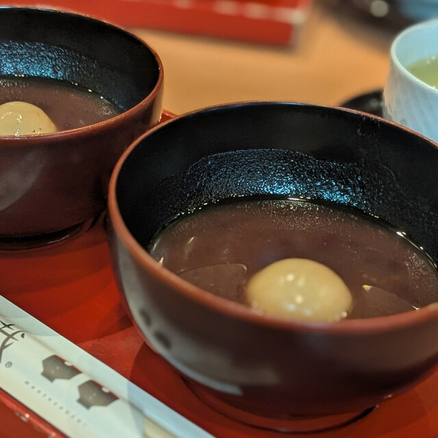 善哉にはお餅では無く白玉のようです。ふんわりと食感も良くて美味し...