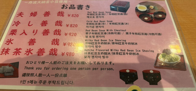 冬場におじゃますることが多いのですが、夏場でも「冷し善哉」があるので、熱波の中、歩き疲れた休憩にも重宝します。