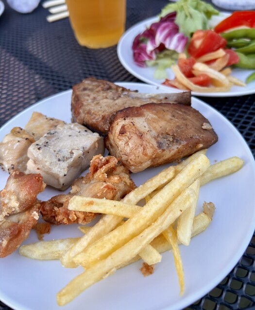 GWにプチオフ会でこちらを利用しました! 予約をしていたので大変な混み具合の中スムーズに案内されました。 友達がタバコも吸えると喜んでおり、また天気も良かったので気持ち良い日差しの中でBBQ出来ました! 内容は120分で、90分ラストオーダーです。 お肉も牛、豚、鳥、ソーセージ、帆立、エビ、野菜とあります。 量がもう少し欲しいところでした。 ピザトースト、サラダ、フライドポテトが付... 詳細を見る