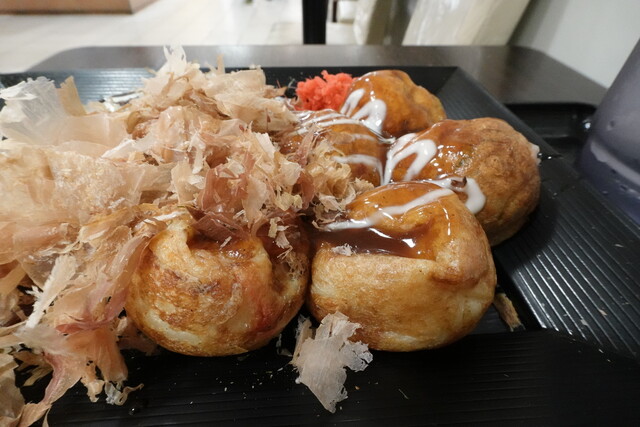 さすがに平日なので、すいていた。たこ焼きは、できあがったものが鉄板上で保温されていた。