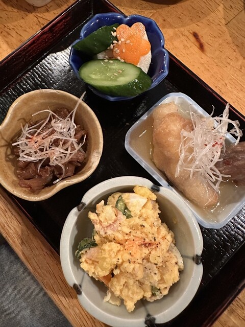 木曜22:50に入店。 それでも席9割埋まっている。 注文したもの ・前菜4種盛 出汁たっぷりのおから、 優しめの味のポテサラ、 シャキシャキのナムル、 いつ食べても安心うずら これだけでも十分飲めます ・とりももたたき 皮がパリッと、身がプリッと 楽しめ... 詳細を見る