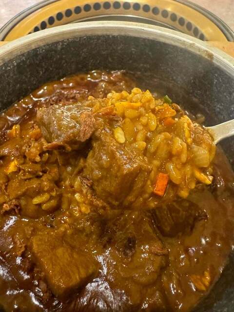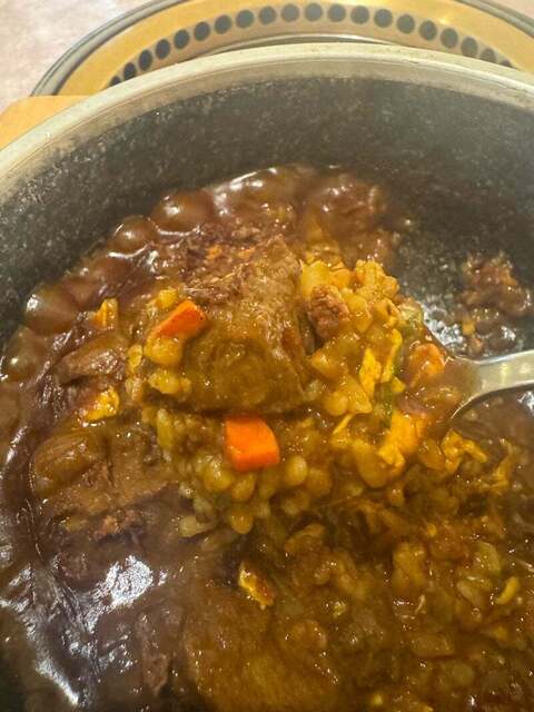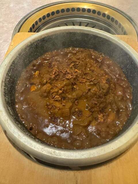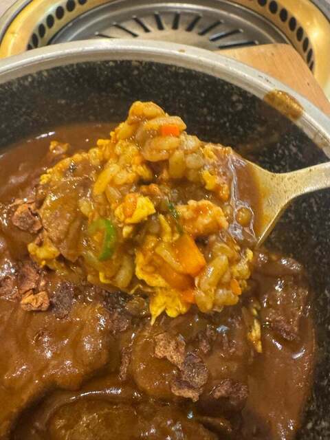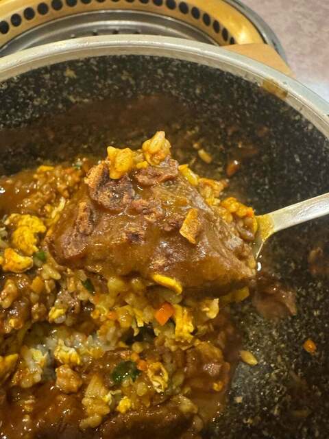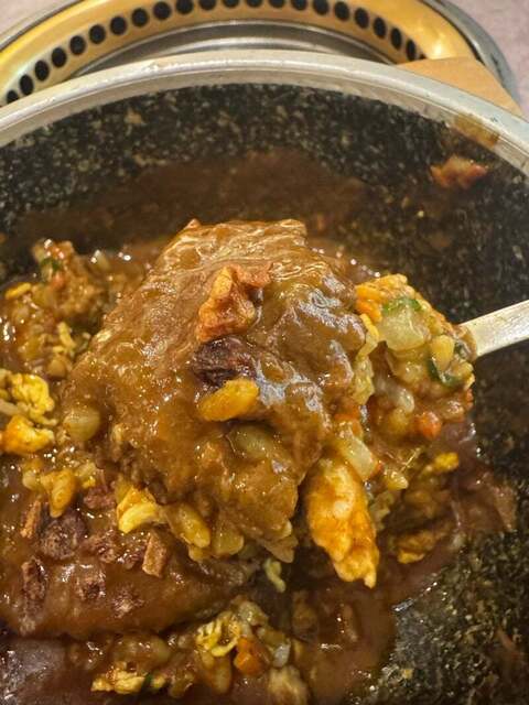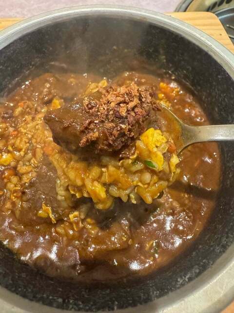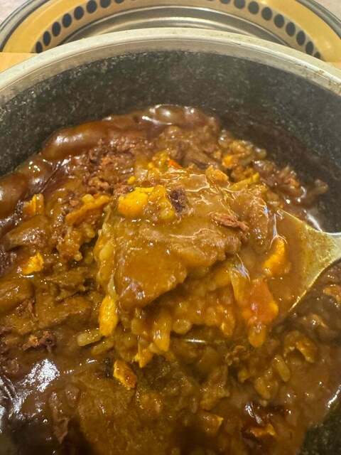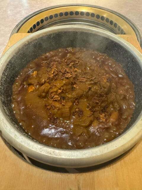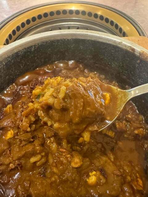 カレーそのものは万人受けする甘口カレーなのだが、熱々で提供する事でかなり美味しくなっている。長堀橋に石焼でカレーを提供する有名店があるが、何時も行列。この店では並ばないで石焼カレーを食べる事ができる。黒毛和牛の量もたっぷりでなかなかいける。