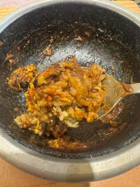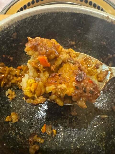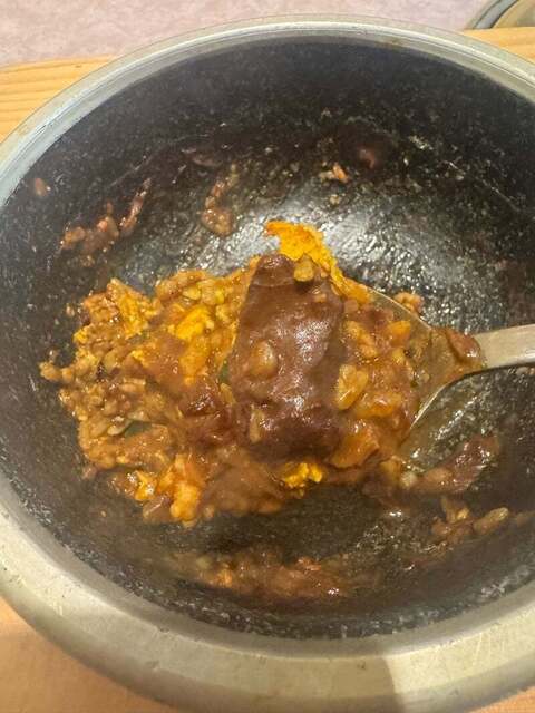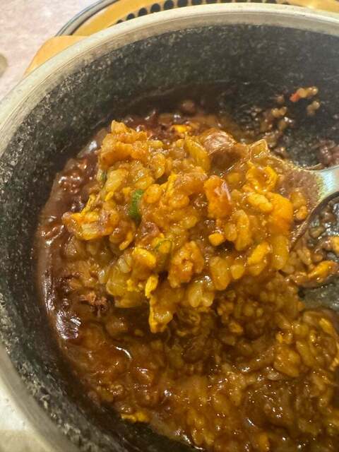 運ばれてきた石焼カレー。普段から石焼ビビンバを出しているので、慣れている。