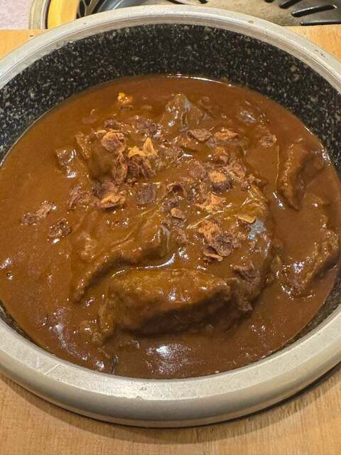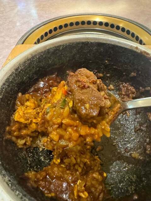 セブのやっぱりステーキで肉屋さんのカレーは肉のクオリティーがいいと思ったので来てみた。カレーは提供する温度が大切なので、その意味では石焼での提供はある意味理想的。黒毛和牛もたっぷり入っており、なかなか美味しかった。