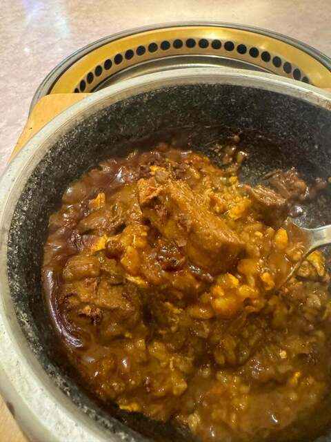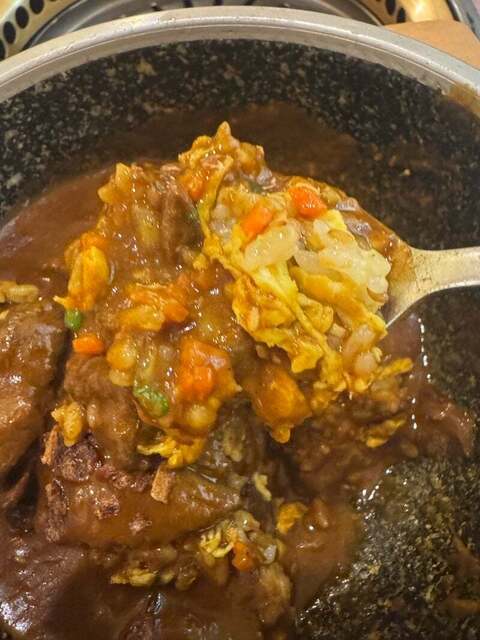なかなかいい。橋本屋もそうだが石焼きで提供されるカレーは、高温でスパイスの効果がマックスになり、インパクト大。やはりカレーは提供温度が大切と再確認。焼肉店は石焼ビビンバを出しているので、ランチカレーの味次第では、ブレイクする可能性を秘めている。