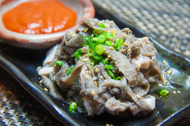 秘伝のにんにく醤油ダレに漬け込んだミノを唐... (by お店)