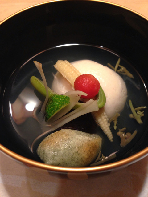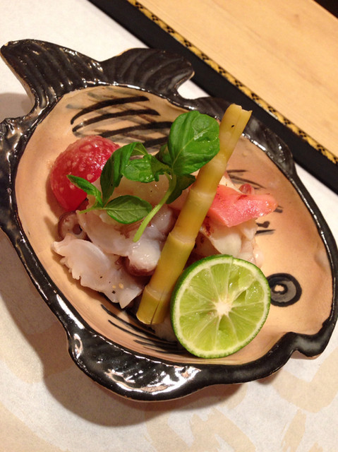 雑居ビルの1階に有りやや分かりにくい場所に有るにもかかわらず、連日満席のミシュラン1つ星の実力派割烹に御邪魔しました。 店内はカウンター席と小上がりのテーブル席のみです。第一印象は清潔感が有り和食屋らしい小ざっぱりしたお店だなと言うものでした。クーラーの良く効いた店内はこの時期には有りがたいですね。 メニューは7000円と9000円のコースのみの設定となっています。 ドリンクはビール、日... 詳細を見る