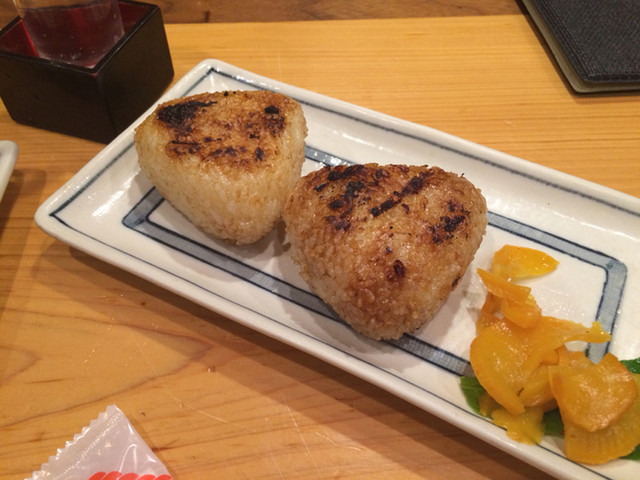 焦げたお醤油の香ばしい焼きおにぎり美味しい〜♫♫♫
