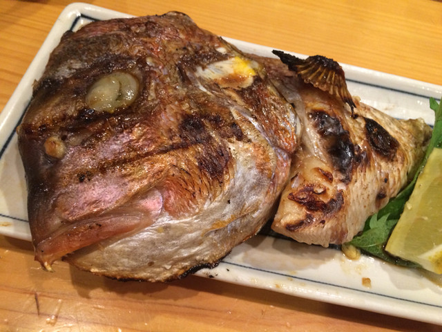 大きな鯛の頭がちょっと焦げていい感じに焼けています。