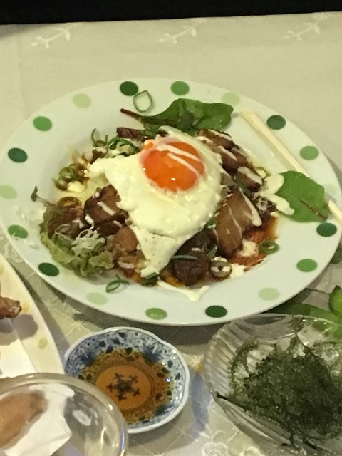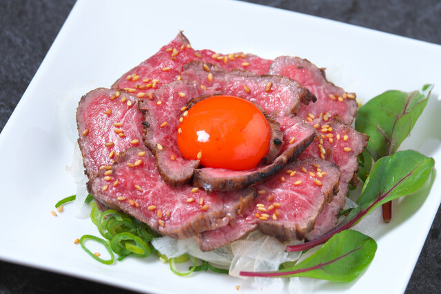黒毛和牛炙りユッケ ガーリックポン酢かけ (by お店)