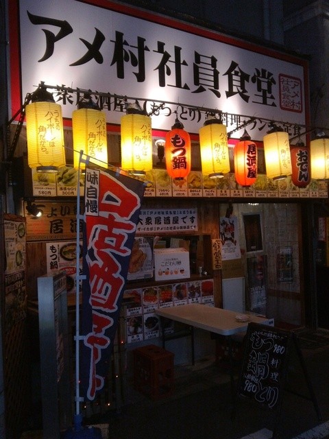 様々なお料理を楽しんで頂きたい…そんな想いで「アメ村社員食堂」と名付けました。 中央市場直接買付けの魚介類め、旬の食材を使用したパパママの創作料理が中心。二人の人柄にお客さんが集まる楽しいアメ社。 定番のお酒はもちろん、人気爆発!あほになる味!?ガリチューハイは是非お試しあれ! ■宴会プラン■宴会コース1999円~ご予算に応じてご用意。飲み放題+1500円で♪ 【貸切】25名様~最大45名様までO...K!ご予算・お日にちについてはご相談下さい。 (貸切ライブ等イベントも御相談下さい/機材持ち込みOK) 打ち上げ/飲み会/歓送迎会/定例会などシチュエーションに合わせてご利用頂けます。さぁ!アメ社で乾杯~!★★★お問い合わせ&ご予約⇒留守番電話にメッセージを残してくださいね。折返しお電話します。19時以降でしたらスタッフ対応させて頂きます★★★