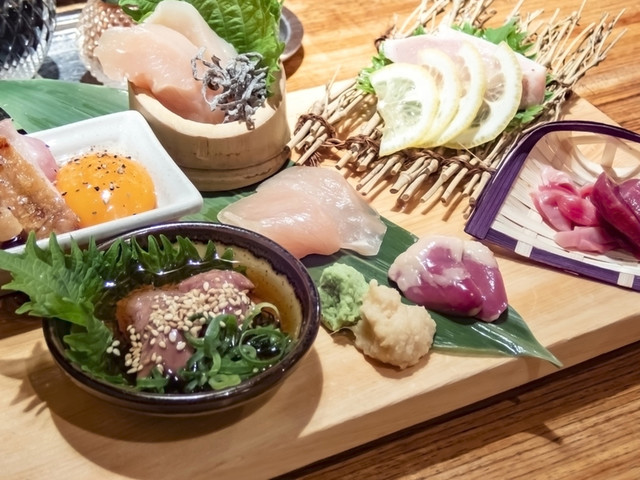 当店の鶏肉は、厳選された朝引き鶏のみを使用しております!お刺身やユッケは、ぷりぷりとした新鮮さの際立つものばかりで、是非ともご賞味いただきたい逸品となっております!色んな部位を楽しんでいただける盛り合わせもご用意しております。炙りももなどの串ものは、こだわりの土佐備長炭で丹精こめて焼き上げております。浅目の火入れでレアでも召し上がっていただけますのでご希望の焼き加減に調節も可◎一晩かけてじっくりと...炊き上げた鶏白湯スープはラストのしめにぴったり♪お料理を引き立てるお酒は、国産ワインやフレッシュフルーツサワーなど、多種多様にとり揃えております。お料理に合わせるお酒など、お気軽にスタッフまでお尋ねください。ご満足いただけるベストな一杯を選ばせていただきます。心地よいアットホームな空間で、美味しいお酒とお食事をゆったりとお楽しみください。スタッフ一同、皆さまのご来店を心よりお待ちしております!